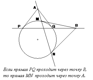 Значит, прямая b, проходящая через точку А, является полярой точки В. Это доказательство сохраняет силу при любом расположении точек А и В относительно окружности.