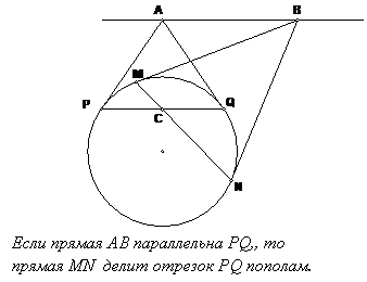 Пусть А и В – две точки вне окружности. AP, AQ, BM, BN – касательные.