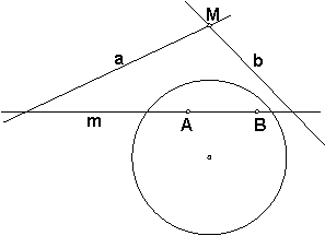 Действительно, если поляры точек А и В проходят через точку М, то поляра точки М проходит через точки А и В. Это и значит, что при полярном преобразовании прямая m, соединяющая точки А и В, переходит в точку М пересечения поляр а и b.