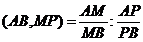 Если теперь рассмотреть прямую АВ, как ось координат с началом в точке О, то точки М, Р,А, В будут иметь координаты