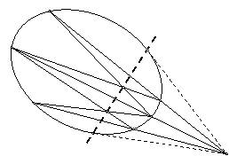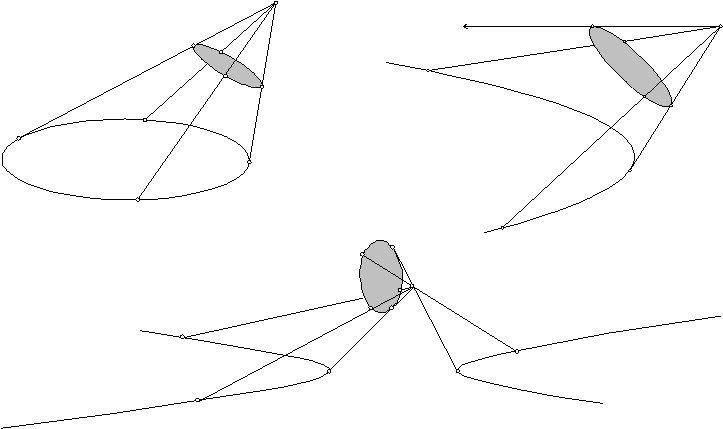 След, который образует эта коническая поверхность при пересечении с плоскостью и есть центральная проекция окружности. Из евклидовой геометрии известно, что конические сечения бывают трех различных типов: эллипс, парабола, гипербола.
