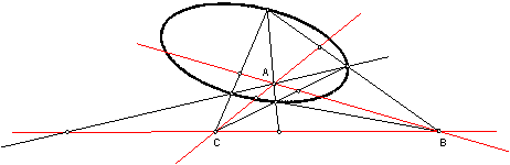 Трехвершинник АВС называется автополярным трехвершинником конического сечения, так как каждая его сторона служит полярой противоположной вершины.