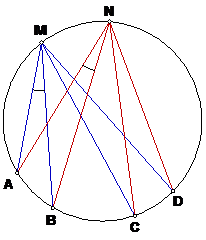 Тот же самый четырехвершинник, вписанный в окружность, приводит к разным интересным задачам.