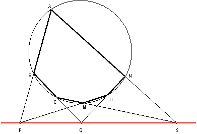 Если эта ломаная ограничивает выпуклый шестиугольник, то пары отрезков AN и CM, AB и DM, ВC и DN являются его противоположными сторонами. В этом случае теорему Паскаля формулируют обычно так:
