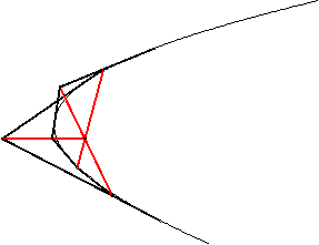 , то есть касательная к параболе делит отрезки двух других касательных в одном и том же отношении (в противоположных направлениях).
