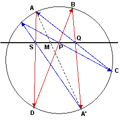 Значит, при композиции трех центральных отображений с центрами S, P, Q точки А и А' меняются местами. Следовательно это – центральное отображение. Назовем его центр М.