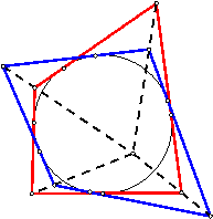 Можно, конечно же, сформулировать и двойственную теорему. Для этого построим полярное отображение. Вместо вписанных четырехсторонников появятся описанные четырехсторонники, а теорема станет звучать так: