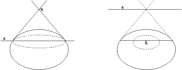 Заметим сначала, что прямая s, соединяющая неподвижные точки отображения – это его ось. Очевидно, полюсом этой прямой относительно обеих(!) коник является точка пересечения общих касательных. Можно ожидать, что и в случае отсутствия общих точек ось отображения будет иметь один и тот же полюс относительно двух коник. И это действительно так.