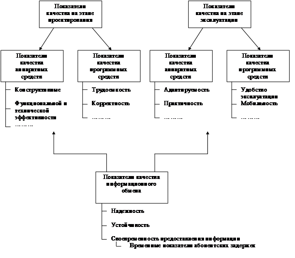 По понятным причинам качество АСУЖТ во многом зависит от того, насколько грамотно были отслежены возможные дефекты на этапе проектирования системы. Все «упущения» проявляются в дальнейшем в процессе эксплуатации – в результате комплексной работы технических и программных средств, персонала. Развитием иерархического подхода является представленная на рис. 2 обобщенная структура показателей качества АСУЖТ.