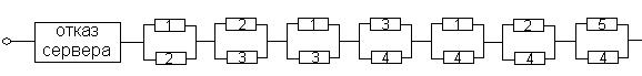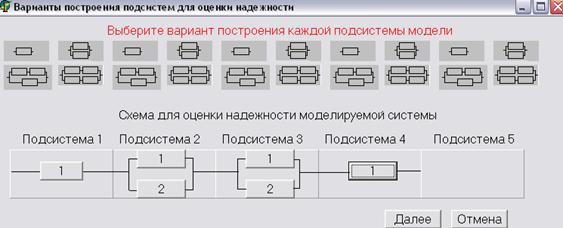 Программный комплекс разработан с использованием объектного языка программирования Object Pascal и реализован в среде программирования DELPHI. В состав комплекса включен набор алгоритмов, рассмотренных в главах 2 и 3 диссертационной работы, и состоит из соответствующих модулей и окон для необходимых расчетов. К достоинствам комплекса следует отнести удобный пользовательский интерфейс, который позволяет эксплуатировать комплекс любому пользователю (без специальной подготовки). В основе расчетов лежит ряд математических функций, используемых при построении алгоритмов глав 2 и 3, есть возможность сохранить все полученные результаты (включая графики) в файл, с именем и местом расположения заданным пользователем. Например, программный модуль построения схемы для оценки надежности моделируемой системы показан на рис. 8.