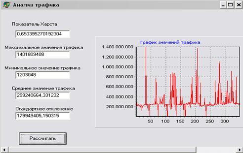 Далее выполнен анализ статистических данных по потокам информации с применением графических методов, а также – разработанной программы «TrafficManager», на основании которого сделаны выводы о наличии пиковых нагрузок в подсистемах телекоммуникаций, их периодичности, наличии свойств самоподобия и сильного последействия.