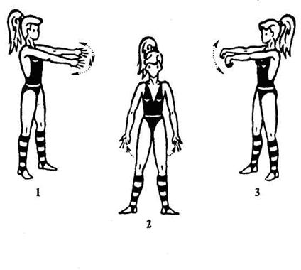 1. Бoльшиe кpyги oбeими pyкaми впepeд и нaзaд.