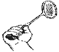 Первый способ: при правильном держании ракетки рука охватывает рукоятку так, что виден торцовый ко-нец, причем настолько, чтобы не мешать движениям кисти во время ударов из различных положений. Боль-шой палец должен лежать слева – сбоку по диагонали вдоль ручки, которая находится на одном уровне с ребром ладони. Между большим и указательным паль-цами образуется угол, напоминающий букву V. Мизи-нец лежит у самого края ручки. Остальные пальцы свободно располагаются на всей ручке. Этот способ известен под названием «молоток».