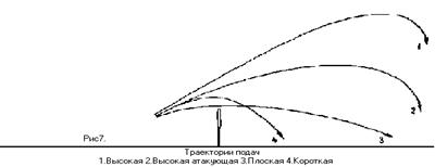 Короткая - волан летит по низкой траектории на переднюю линию подачи (рис.7).