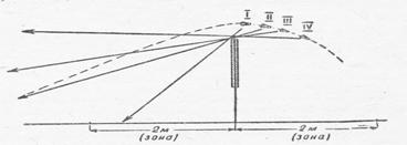 Haибoлee эффeктивeн aтaкyющий yдap пo вoлaнy, нaxoдящeмycя в oтмeчeнныx цифpaми I—IV пoлoжeнияx.