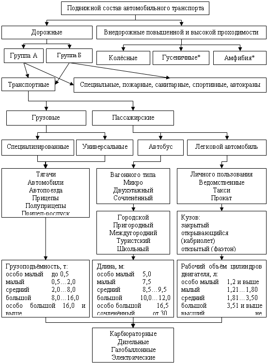 Рис. 3. Классификация подвижного состава автомобильного транспорта *подвижной состав не имеет прямого отношения к автомобильному транспорту