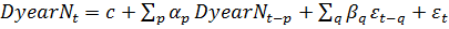 Перед непосредственным моделированием чувствительности доходности на рынке ГКО-ОФЗ к различным экономическим факторам и финансовыми индикаторам мы решили представить временные ряды приростов доходностей в виде модели ARIMA(p, I,q):