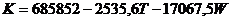 Результаты обработки экспериментальных данных методом множественной корреляции для зависимости K=K(WT)