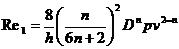 Диаграмма Хэдстрема позволяет рассчитывать по формуле (234) Дарси-Вейсбаха линейные потери давления в трубе при течении ньютоновских жидкостей и сред Бингама-Шведова. Однако вязкостные свойства всех пищевых сред описать этими двумя линейными реологическими моделями нельзя. Можно получить общий алгоритм построения формул вида (236) и (238) для различных неньютоновских жидкостей. Воспользуемся следующими формулами, которые были выведены раньше: