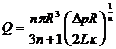 Определение эффективной скорости сдвига не является тривиальной задачей и при удачном выборе этой величины метод эффективной вязкости может дать точные количественные результаты. Покажем это на простом примере течения степенной жидкости в канале круглого сечения. Расходно-напорная характеристика в этом случае имеет вид: