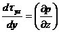 pτpτ+Δτ —главные вектора сил вязкого трения на поверхностях (х, у, z) и (х, у + Δy, z).