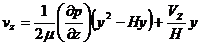 Ширина канала W и скорость верхней стенки VZ определяется тогда формулами вида: