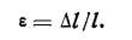 Деформация — это изменение формы или линейных размеров тела под действием внешних сил, при изменении влажности, температуры и пр., при котором частицы или молекулы смещаются одна относительно другой без нарушения сплошности тела. Относительная деформация е при одноосном растяжении — сжатии (свободном или в форме) представляет собой отношение абсолютной Δl (в м) к первоначальным размерам тела l (в м), т. е.
