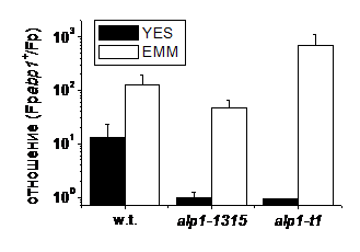 Рост клеток alp1-t1 на богатой среде контролируется белками митотического контроля (чекпойнта).