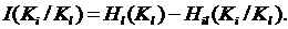 Количество информации, полученное в результате регистрации признака Кi (i ≠ l) относительно состояния, возникшего после диагностирования по признаку Кl, определяется как информация, вносимая этим признаком: