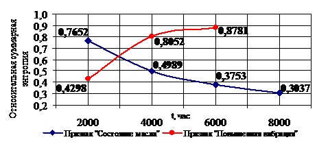 Проводя анализ данного распределения необходимо отметить тенденцию к снижению интегрального показателя в процессе наработки двигателя, а как следствие этого и уровня его работоспособности.
