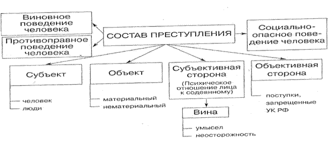 - Теперь нужно разобраться по каким признакам определяется преступление, посмотрите на схему на доске, у вас есть эта схема на партах.