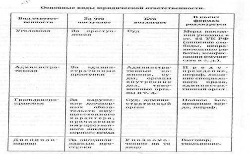 - Итак, у вас на столах лежат таблицы с понятиями, прочитайте вслух, что называется юридической ответственностью и запишите в тетрадь.