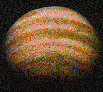 | Эта фотография Юпитера была получена 1 декабря 1973 г., когда космический зонд "Пионер-10" приблизился к планете на расстояние 2,5 млн. км. Заметны неровные очертания поясов. Темное пятно-тень от Ио, ближайшего из больших спутников, который движется во внешней части юпитерианской магнитосферы; Ио больше, чем наша Луна. |