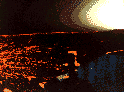| Захватывающая картина захода Солнца над Равниной Хриса, сфотографированная "Викингом-1". Камера была включена примерно через 4 мин после захода Солнца и действовала в течение 10 мин. К концу фотографирования Солнце опустилось приблизительно на 3 гр. ниже горизонта. Марсианская поверхность кажется почти черной, и линия горизонта очень резкая. |