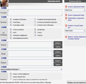 Перейти на страницу «Расширенного поиска» можно, нажав на ссылку с таким названием, представленную под окном «простого поиска» в левой части страницы сайта, или на ссылку «Полнотекстовый поиск» - в центральной части начальной страницы. В этих случаях вы попадаете на страницу «Поисковая форма» - основную форму для проведения поиска на данном портале (рис. 49).