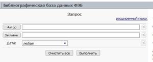 В разделе «Библиографическая база данных» (ББД) содержатся библиографические описания произведений, представленных в ФЭБ. Для проведения поиска необходимо ввести во все или некоторые поля формы «Запрос» в левой части окна ББД (рис. 58).