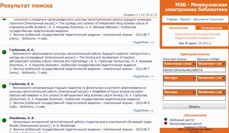 Рис. 61. Результаты поиска по ключевому слову «самостоятельная работа»