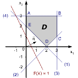 На рис. 2.3 показаны допустимые полуплоскости для всех неравенств, отмеченных номерами. Допустимая область образует выпуклый многоугольник АВСDЕ.