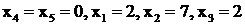 Все уравнения задачи линейно независимы, ранги матрицы системы и расширенной равны 3, следовательно, система совместна. Примем в качестве свободных переменных х4 и х5.