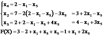 состав свободных изменился. Выразим базисные через новый набор свободных х5 и х1: