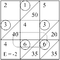 Таким образом, характеристика клетки без поставки определяется как разность показателя перевозок и суммы потенциалов поставщика и потребителя, которых связывает рассматриваемая клетка: