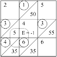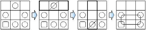 При определении цепочки для какой-либо «пустой» клетки искусственно записывают в неё кружок, затем последовательно вычеркивают все кружки, являющиеся единственными в своей строке или столбце. Оставшиеся от вычеркивания кружки образуют вершины многоугольника цепочки.