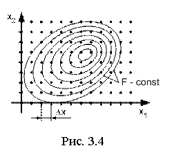 При постоянном небольшом шаге t траектория поиска проходит перпендикулярно линиям