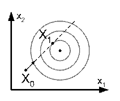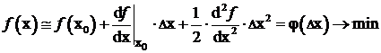 Для функции нескольких переменных разложение в ряд Тейлора заменяет её в точке Х0 функцией второго порядка (эллипсоидом), и поиск минимума опускает точку Х в центр эллипсоида.
