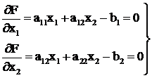 Из общего курса математики известно, что аналитическое решение задачи определяется равенством нулю всех частных производных