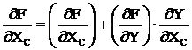 где производные в скобках определяются с учетом явной зависимости F от XC и Y.