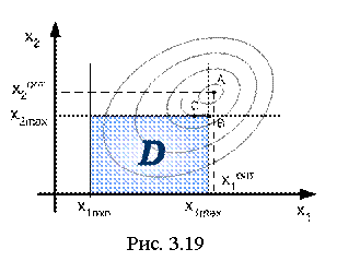 Наиболее простой подход, основанный на поиске решения без учета ограничений, последующей проверке их выполнения и закреплении переменных, нарушивших границу, на предельном значении, часто не дает правильных результатов. Примером может служить ситуация, показанная на рис. 3.19.