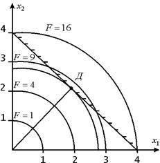 , т. е. минимум обеспечивается в точке, где ограничение выполняется и его можно не учитывать в функции Лагранжа.