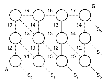 Используем этот принцип для поиска кратчайшего пути из пункта А в пункт Б. Дорожная карта, весьма условная, приведена на рис. 4.1, где показана длина дорог в км.
