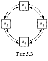 Рассмотрим порядок составления этих уравнений для некоторой системы, имеющей четыре возможных состояния S1, S2, S3, S4. Размеченный граф системы показан на рис. 5.6.